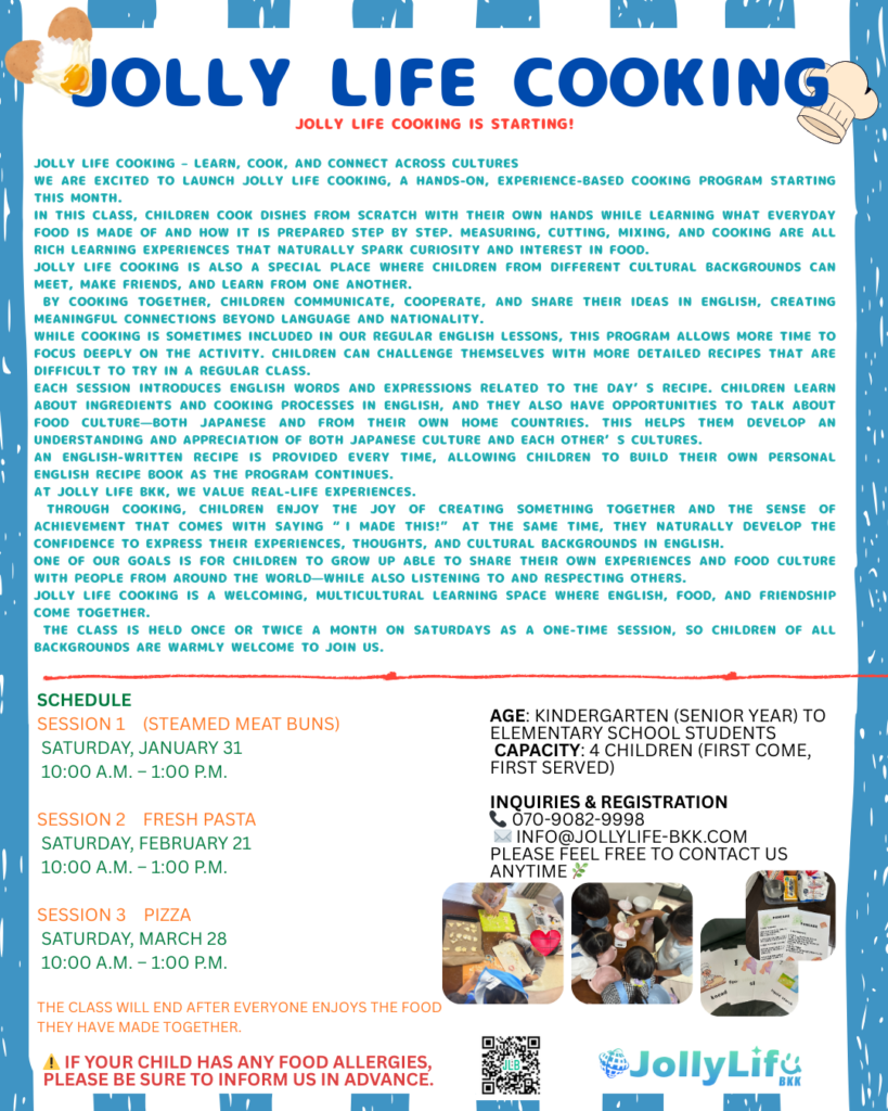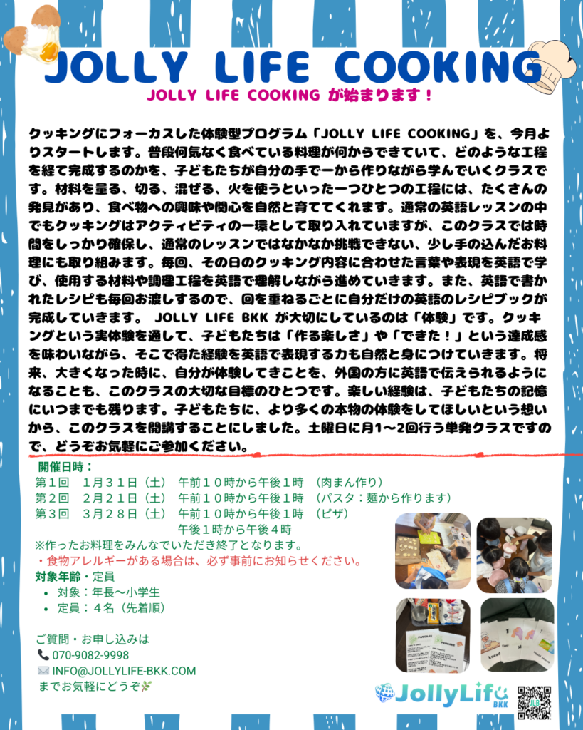 クッキングにフォーカスした体験型プログラム「Jolly Life Cooking」を、今月よりスタートします。