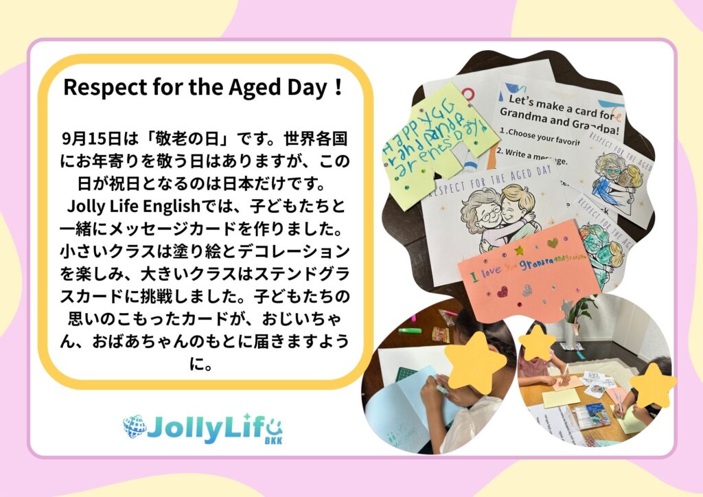 At Jolly Life English, our students created heartfelt message cards. The younger classes enjoyed coloring and decorating, while the older classes tried making stained glass-style cards. We hope these special cards will bring joy to all the grandparents who receive them.