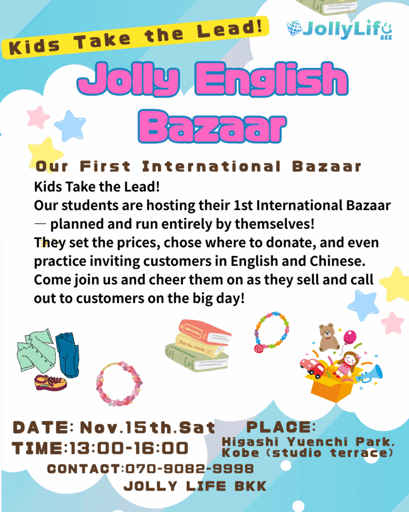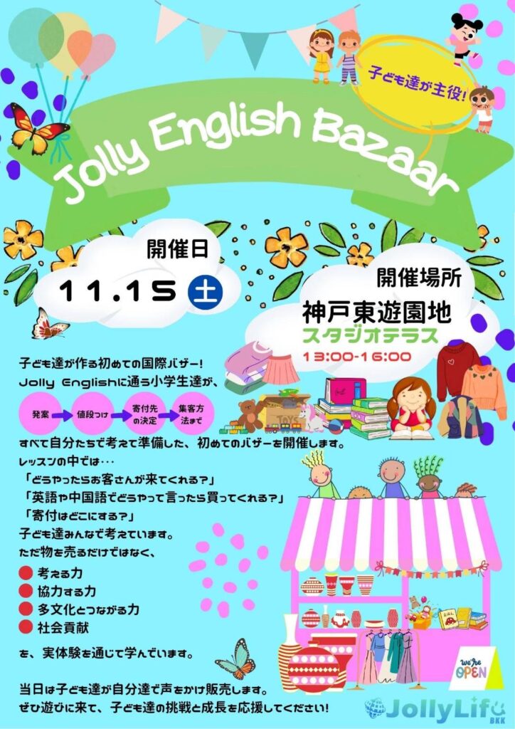 Jolly Englishに通う子どもたちが企画・運営する キッズバザー の開催日が決定しました!