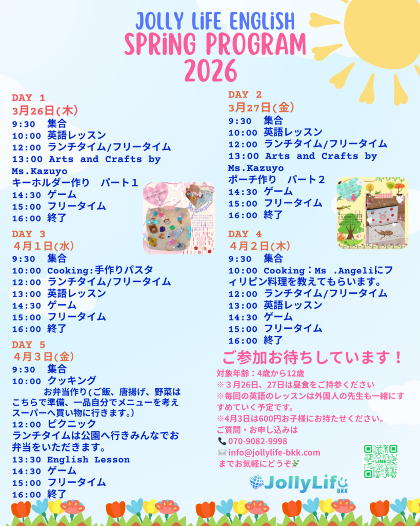 Jolly Life BKKでは、この春も特別なスプリングキャンプを開催いたします。